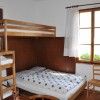 Im Erdgeschoss befindet sich ein Schlafzimmer mit Doppelbett und Etagenbett, sowie eine Küche mit Wohn/Essbereich, Tisch und Fernseher.
